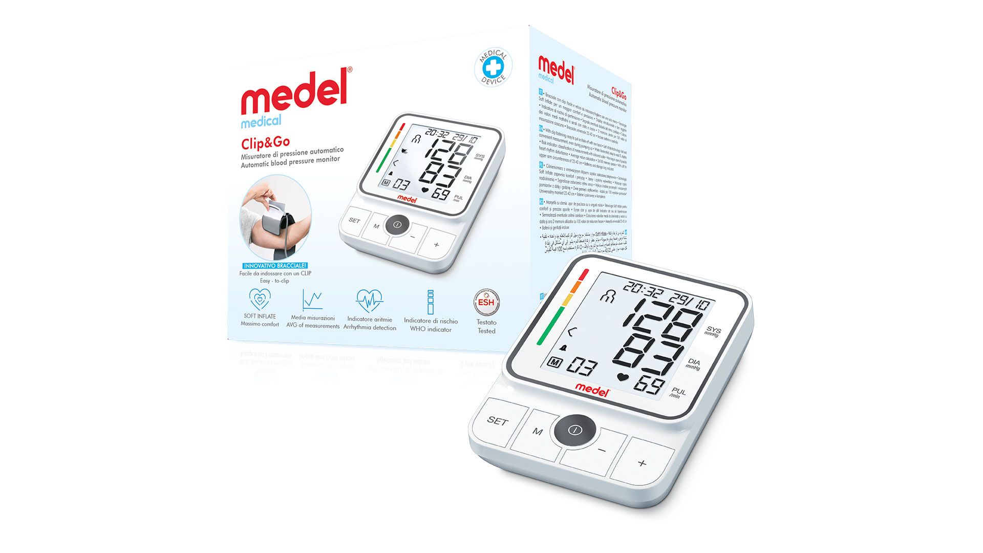 Medel Clip&Go comes with the innovative easy-to-wear arm cuff with CLIP for fast and convenient measurements. the Clip makes attaching the cuff very easy with just one hand.