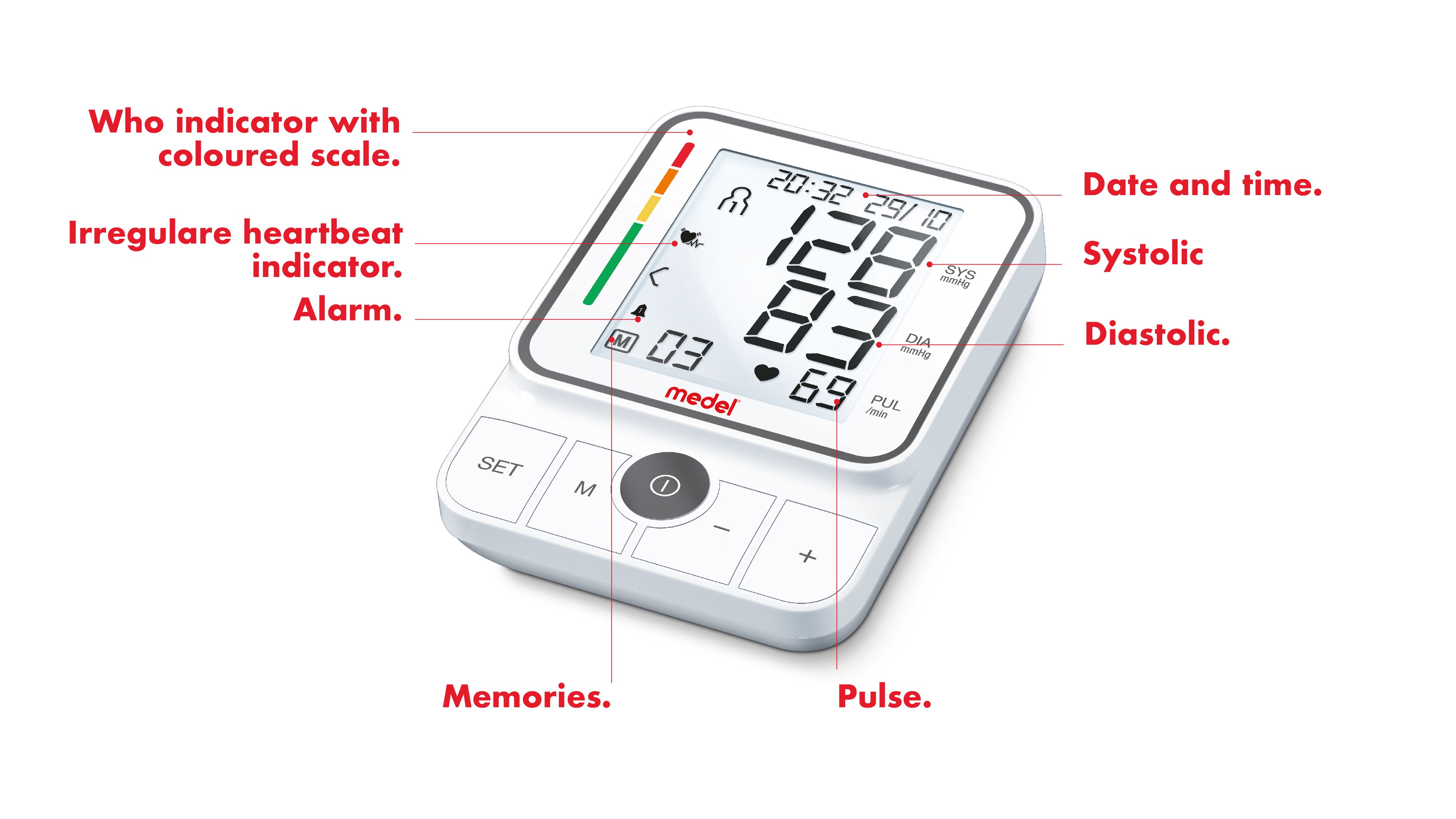 With Soft Inflate technology the measurement is already taken during the inflation. Large and backlight display with classification of measurement for easy and clear reading of values.