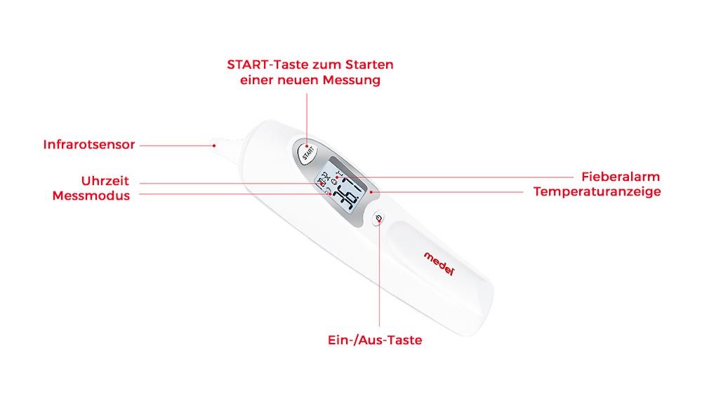 Das Medel EAR TEMP ist ein Ohrthermometer mit Infrarottechnologie, das die Körpertemperatur im Gehörgang von Erwachsenen und Kindern sicher, schnell und nicht invasiv misst.
