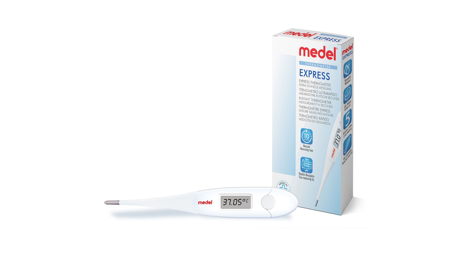 Mit dem Medel EXPRESS kann die Körpertemperatur in nur 10 Sekunden gemessen werden. Es hat eine flexible Spitze für eine komfortable Messung.