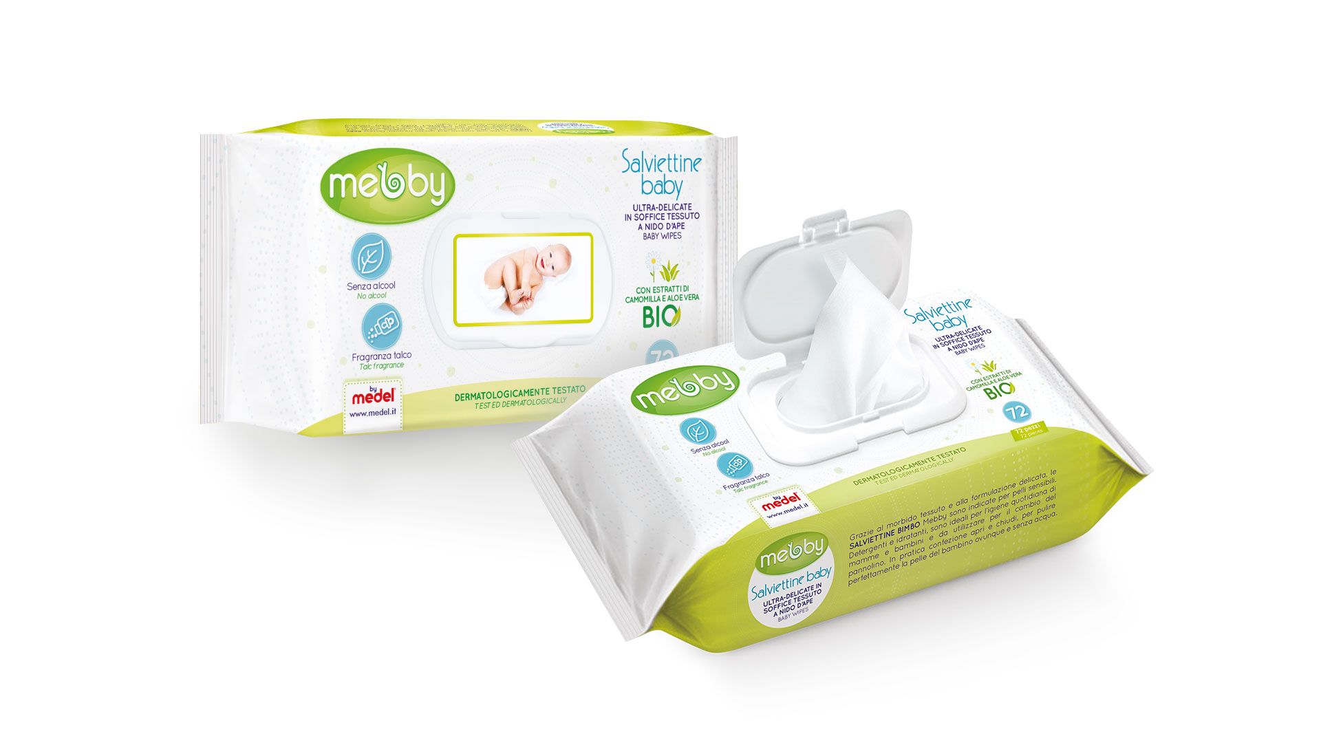 Cleansing and moisturizing, they are ideal for the daily hygiene of mothers and children and to be used for diaper changing. In a practical open-and-close pack, to clean baby's skin perfectly everywhere and without water.