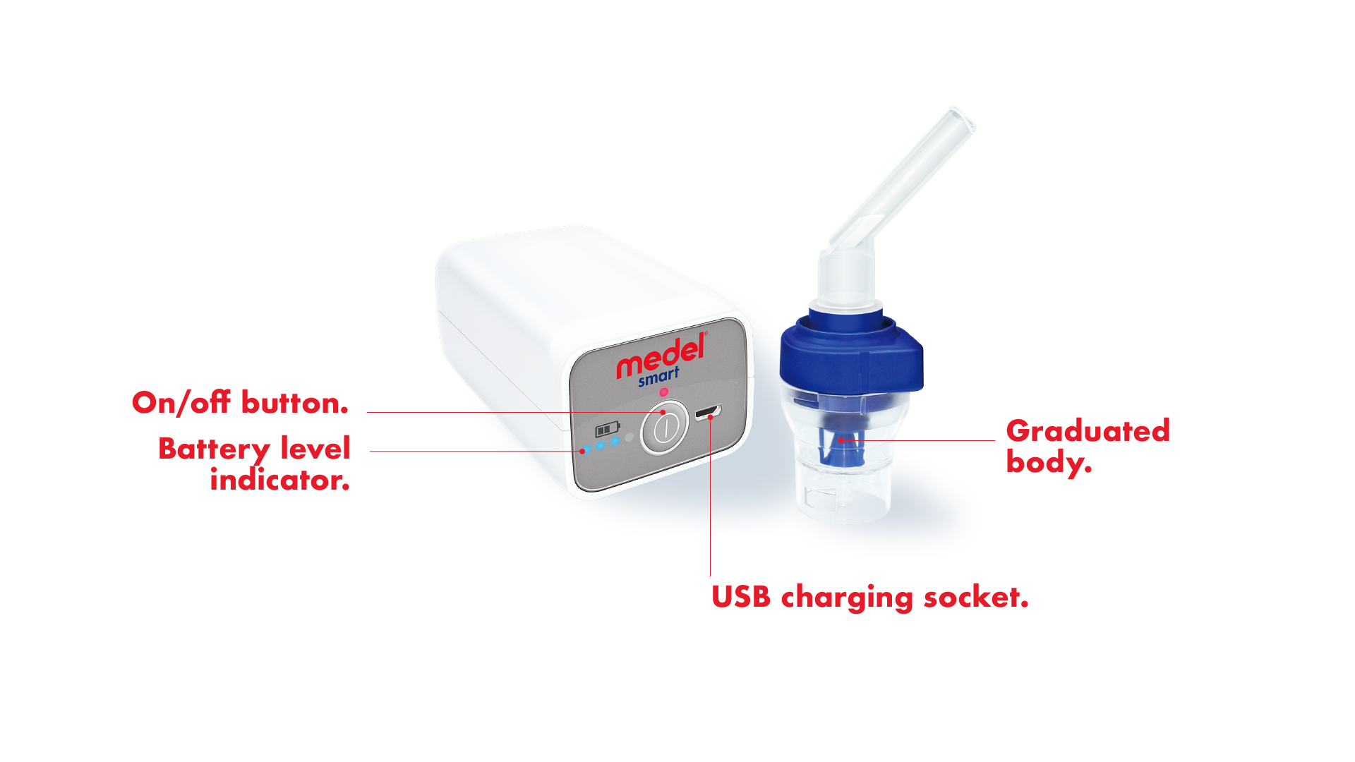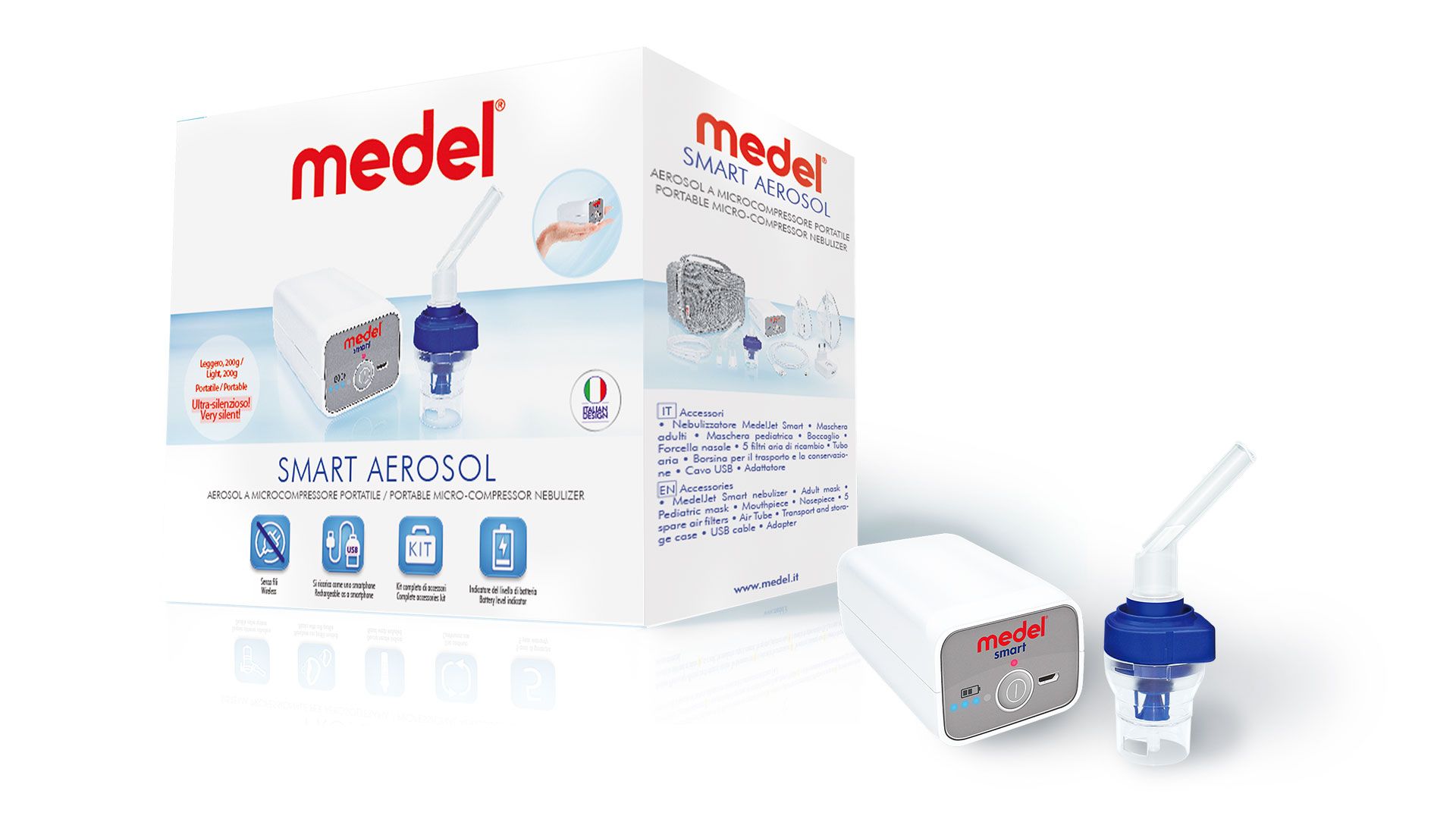 Medel SMART is an ultra-compact aerosol therapy system with micro-compressor, easy to operate and quiet. The device easily fits the palm of your hand, weighs only 200 g and is very easy to carry, particularly suitable for travelling.