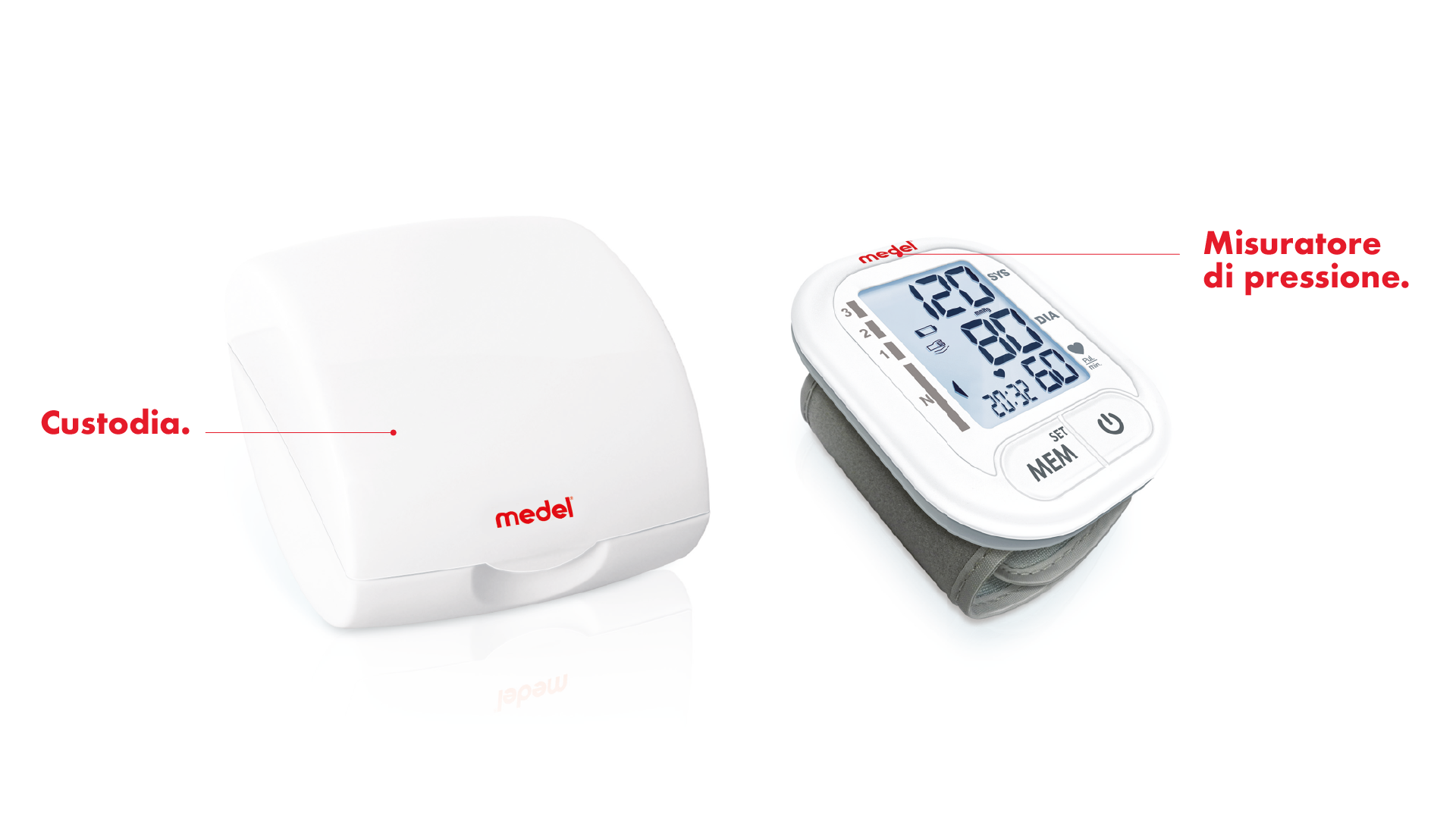 The new Medel SOFT wrist blood pressure monitor comes with an innovative measuring technolo- gy able to detect the measurement during the inflation, for more comfortable and accurate measure- ments. A scale gives you the pressure values indication (position 1-3 means an eventual hypertension).