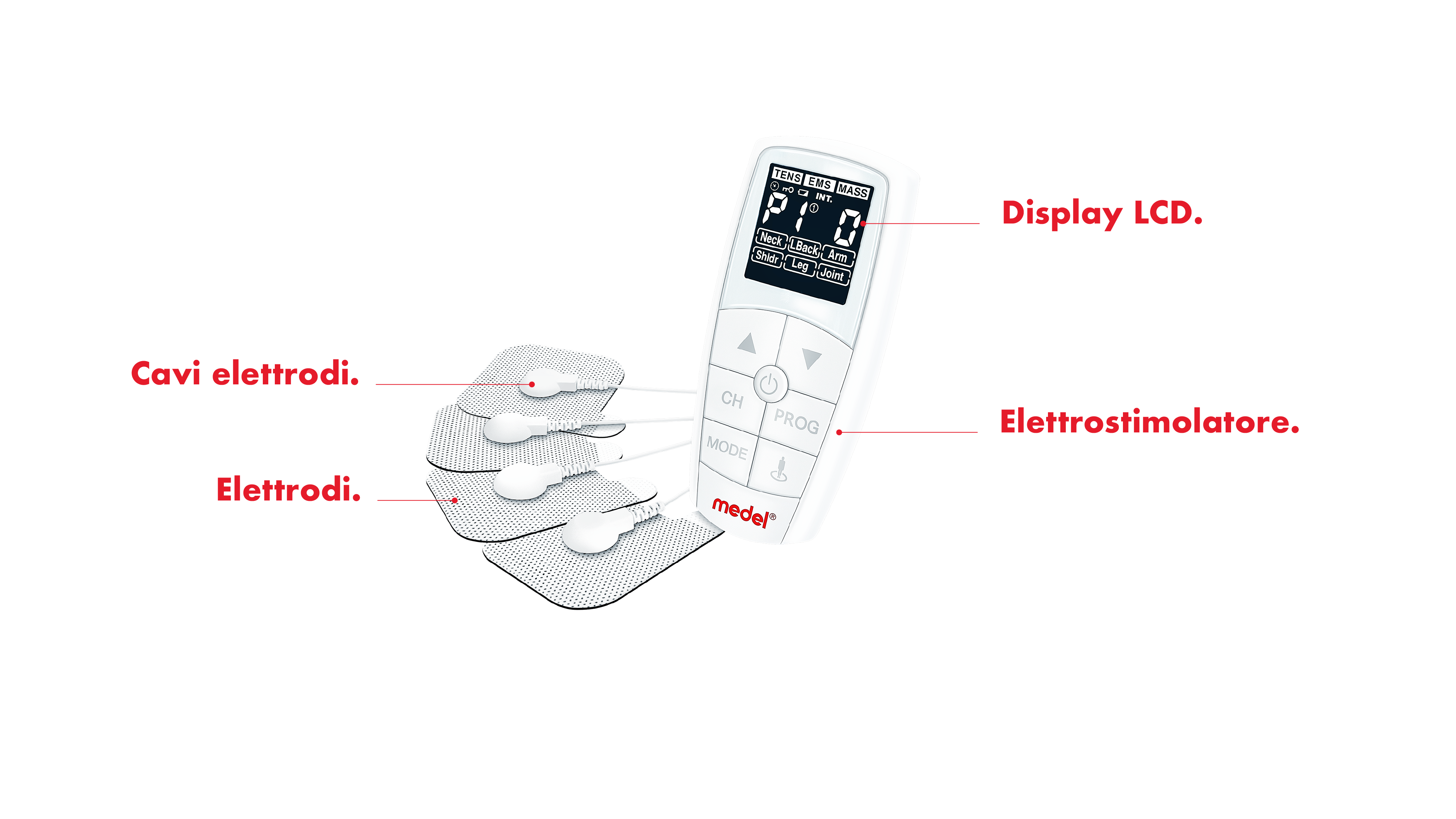Medel MYO-TENS è l’elettrostimolatore a due canali con 3 differenti modalità di elettrostimolazione: