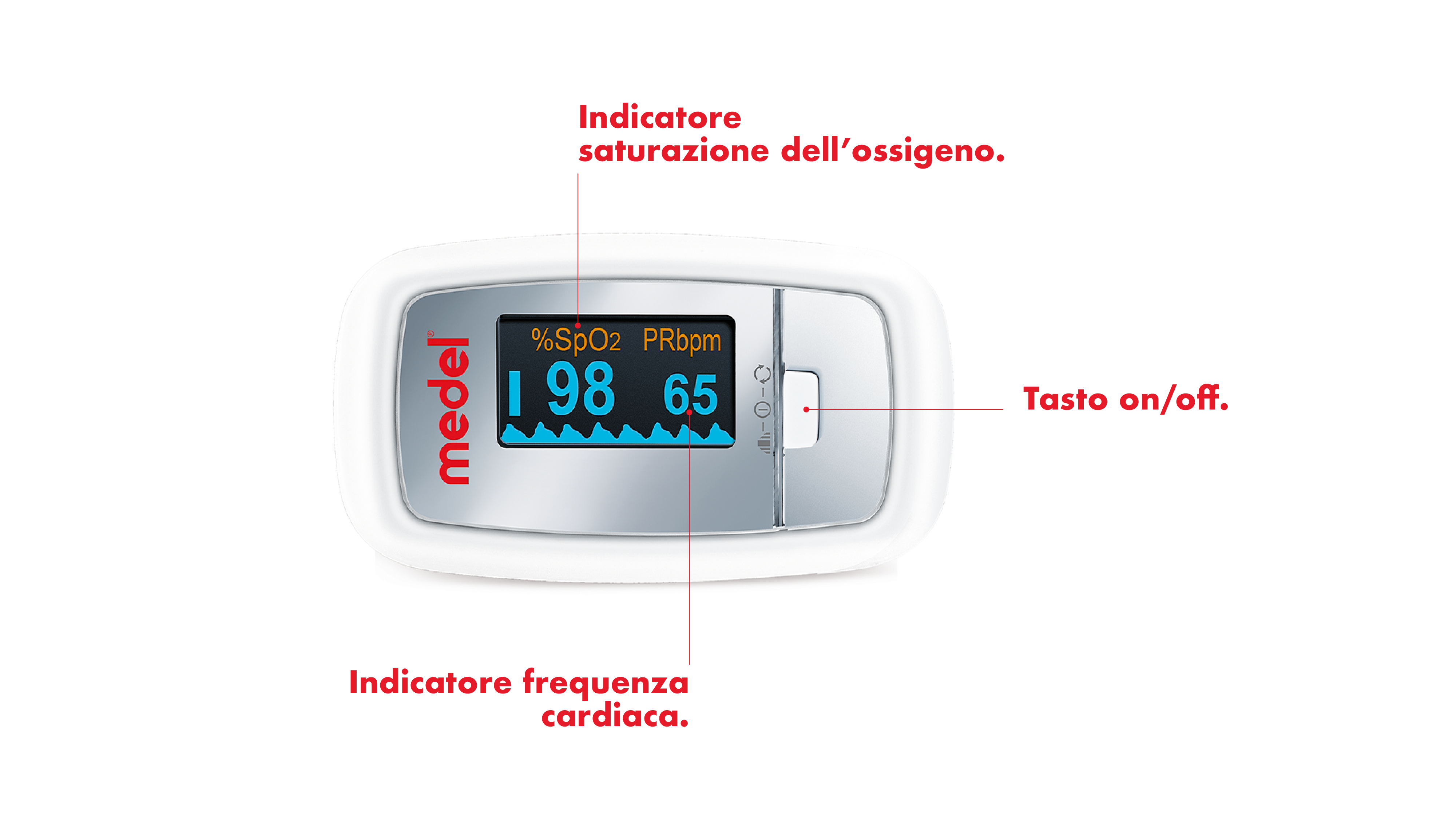 Medel OXYGEN PO01 è il pulsossimetro in grado di calcolare la saturazione dell’ossigeno (SpO2) e la frequenza cardiaca (pulsazioni). Piccolo e leggero, per un utilizzo sia a casa che in viaggio.