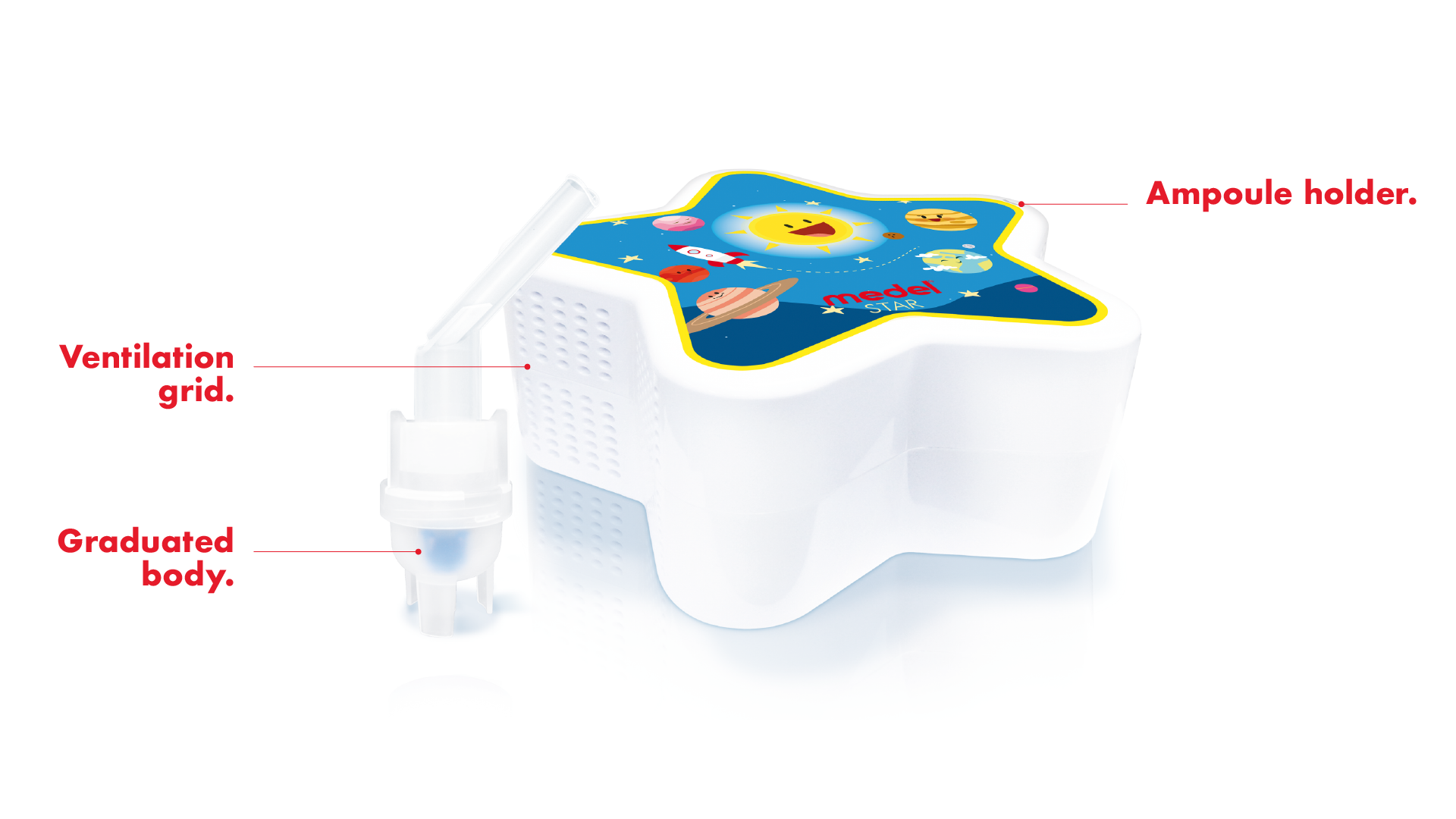 Medel STAR is a piston type compressor nebulizer system. The silent operation and the convenience of use make it an ideal device for home use. Medel Star comes with a very attractive design, to ensure a pleasant therapy time for parents and children.