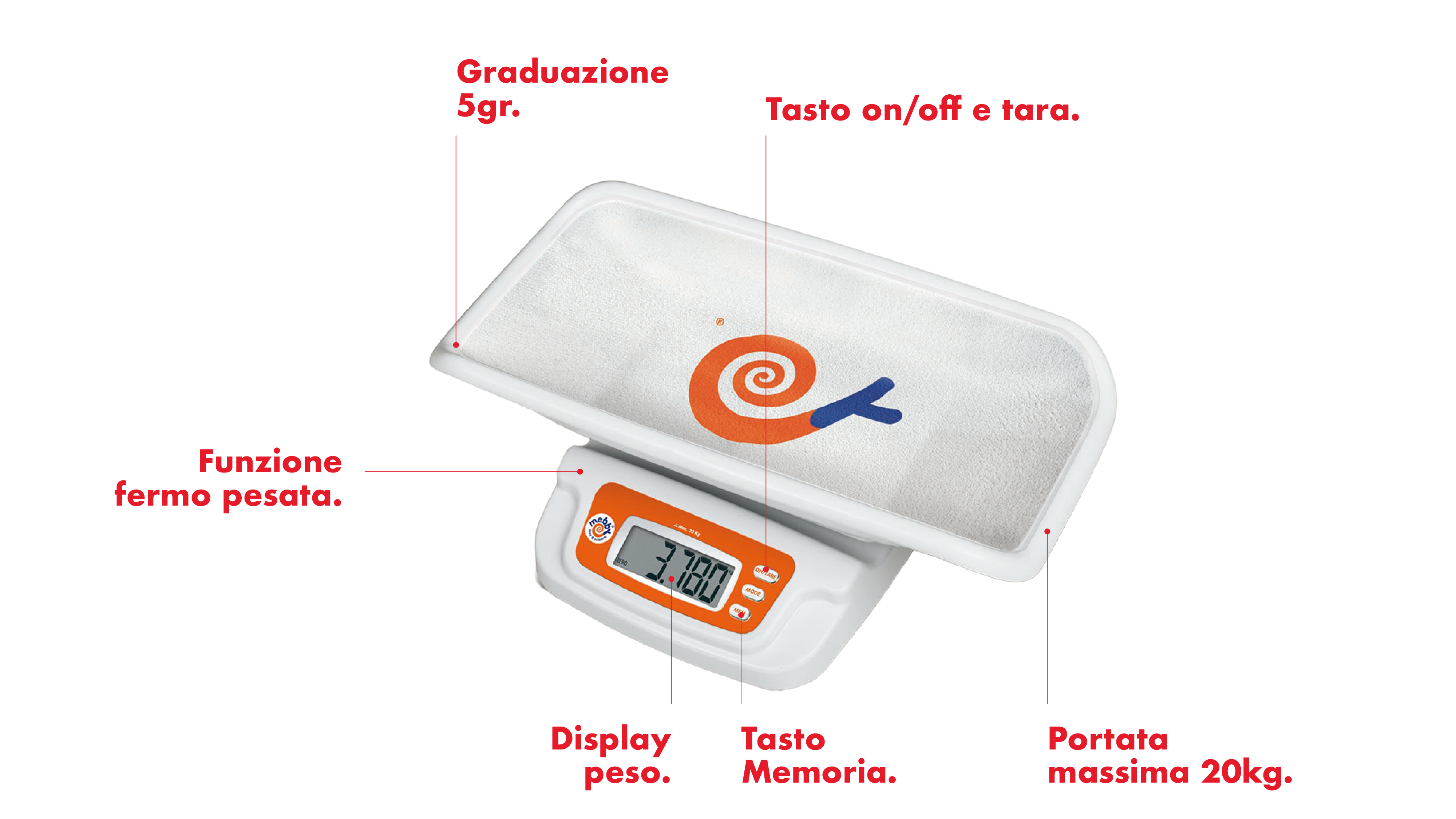 Ideale per controllare le variazioni quotidiane del peso del bambino. Con software in grado di annullare gli effetti provocati dai movimenti del bambino.