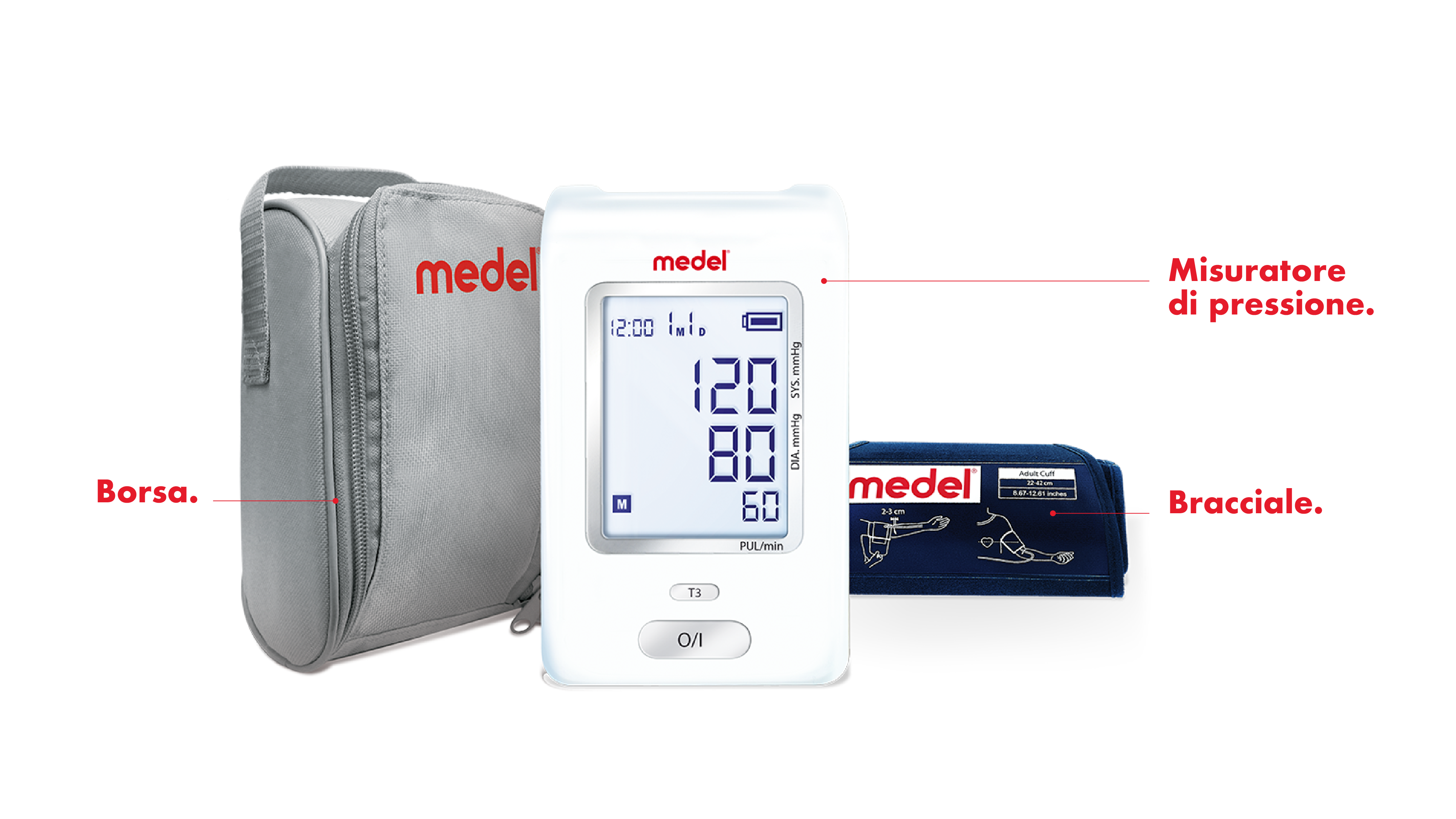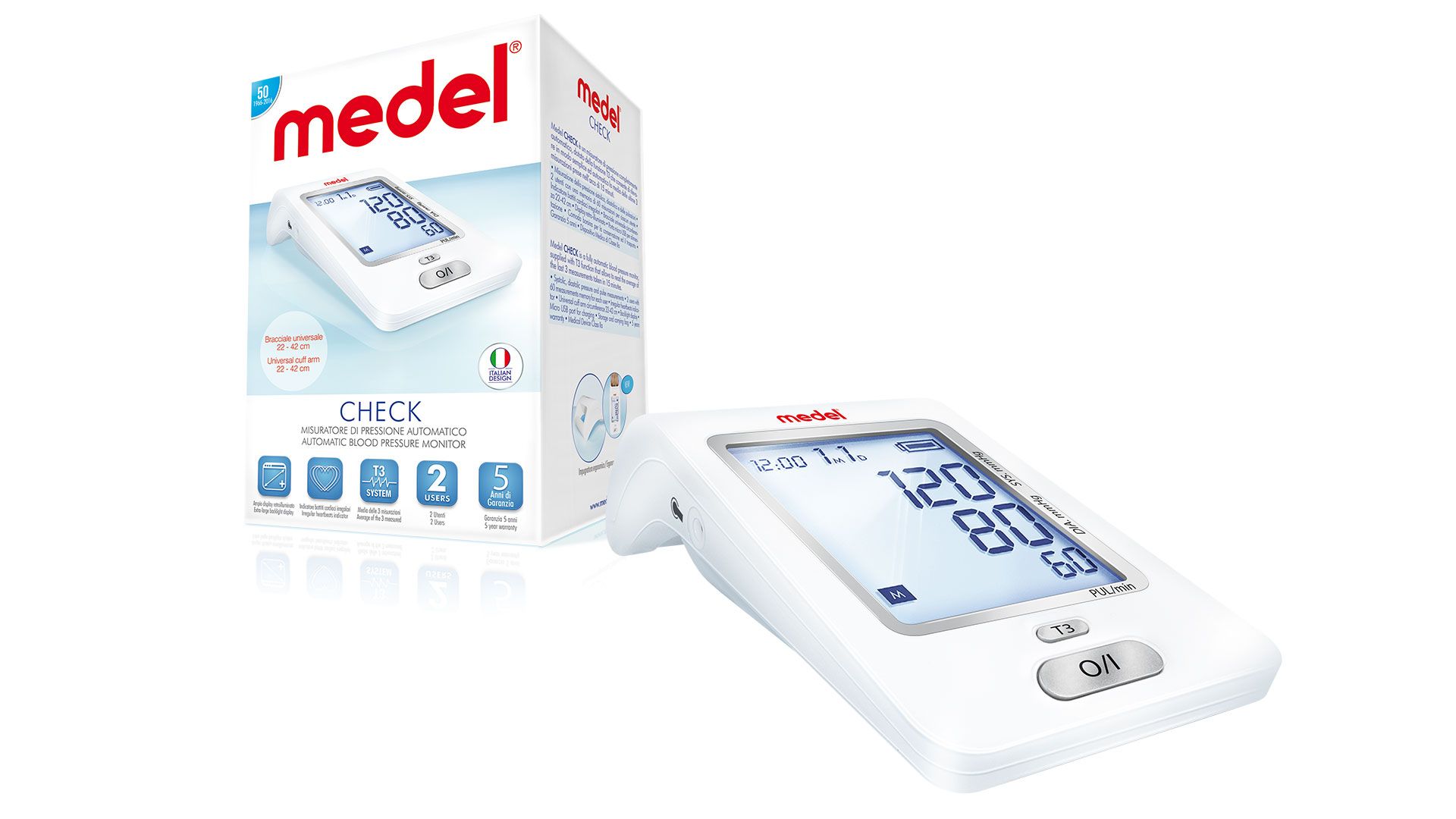 Medel CHECK è un misuratore di pressione completamente automatico con grande schermo retroilluminato per una chiara ed immediata lettura dei valori.