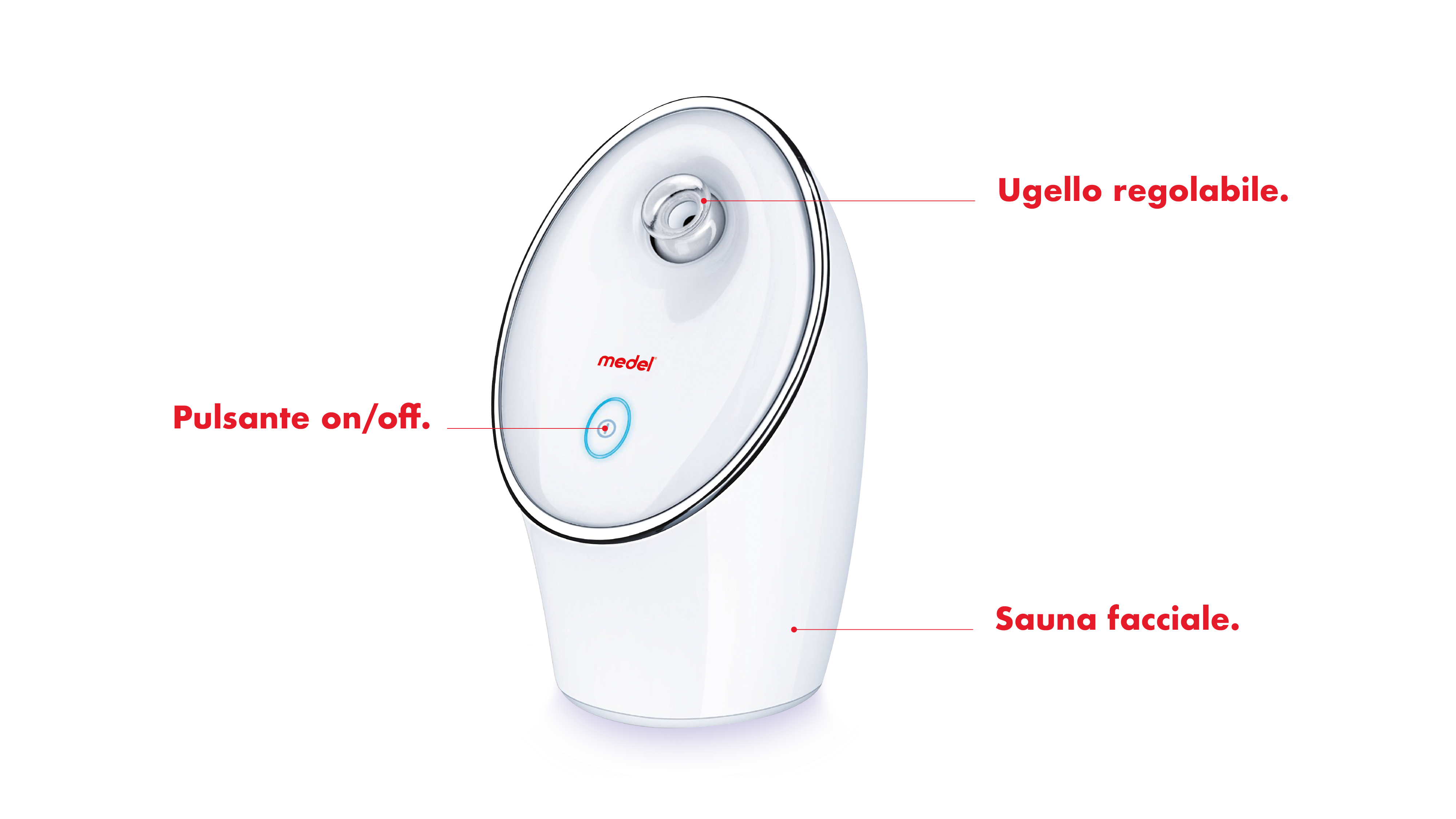 Il vapore rivitalizzante di Medel Ionic Sauna favorisce la circolazione cutanea, dilata i pori e consente una più facile rimozione delle impurità. I pori dilatati consentono ai prodotti di bellezza di penetrare in profondità nella pelle e ne ottimizzano l’azione.