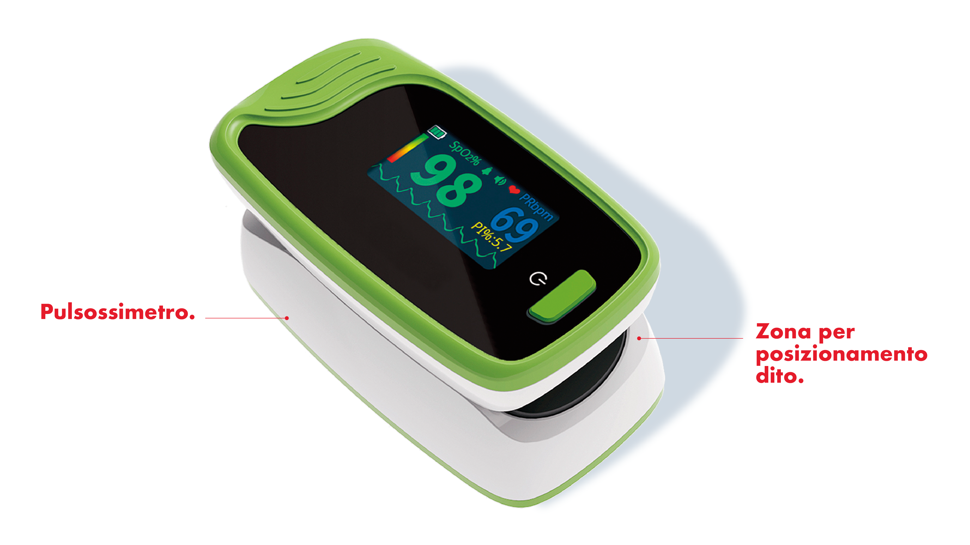 | Precisione misurazione | SpO2 70 – 100%,±2%, Pulsazioni 30-99 bpm, ±2% battiti /minuto |